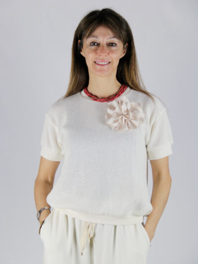 Maglia in filato naturale di pura lana merinos con dettagli in rilievo colore avorio