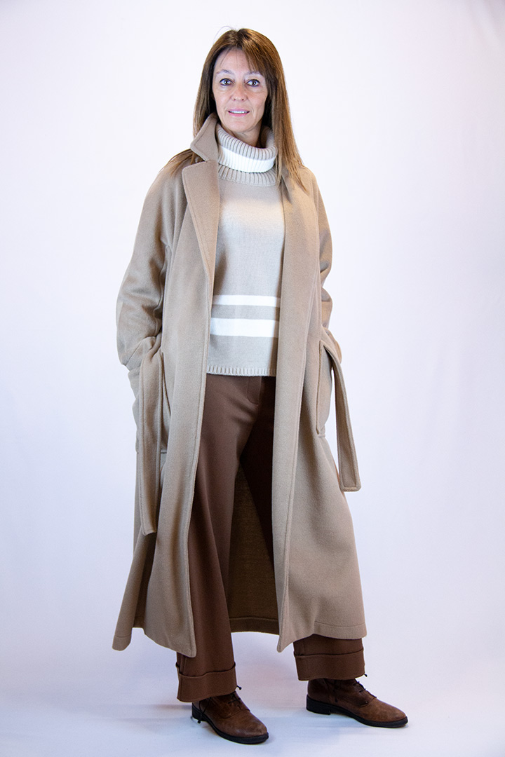 Cappotto cammello donna cintura: eleganza pratica e comfort Made in Italy