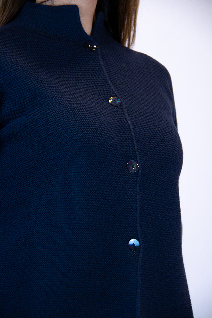 Cardigan blu lana vergine donna: eleganza e comfort naturale