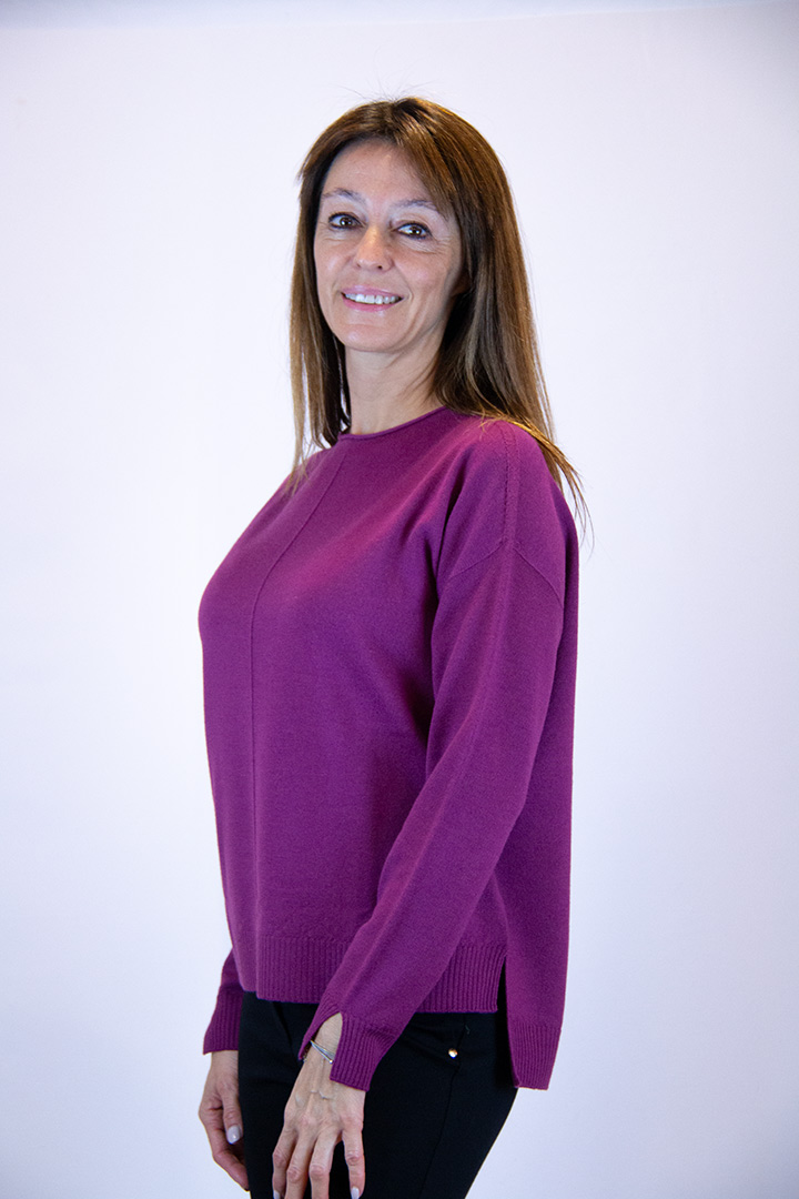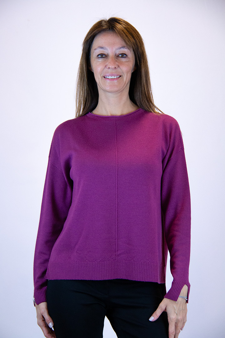 Maglia vinaccia lana merinos donna Made in Italy: eleganza morbida e stile rilassato