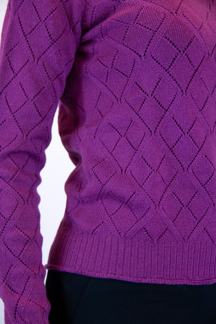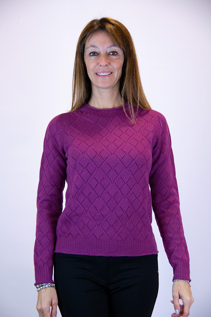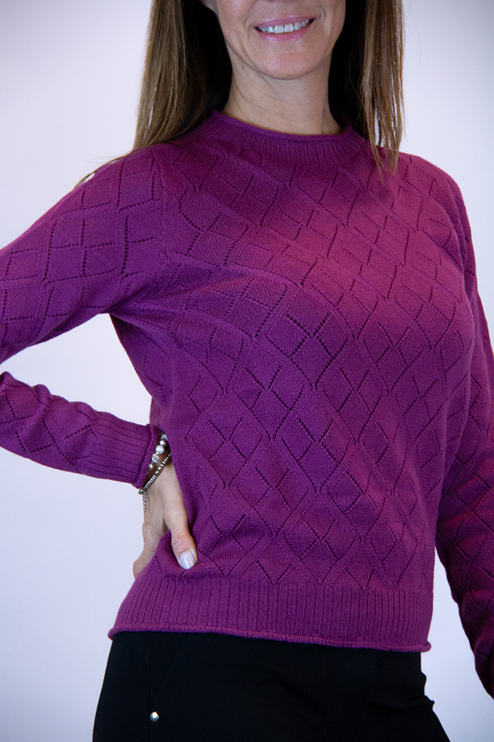 Maglia girocollo traforata vinaccia: femminilità e raffinatezza artigianale